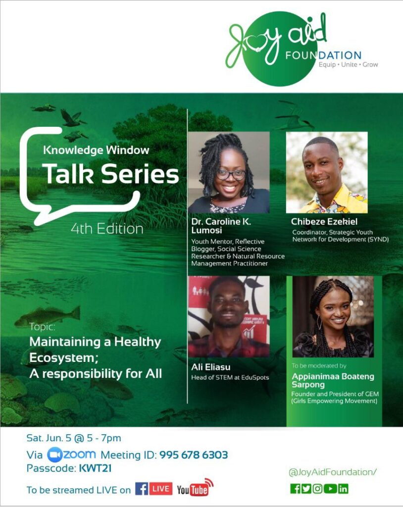 In view of this, Joy Aid Foundation, which seeks to equip, unite and grow is organizing a talk series on a topic dubbed, “Maintaining A Healthy Ecosystem; A Responsibility For All”.